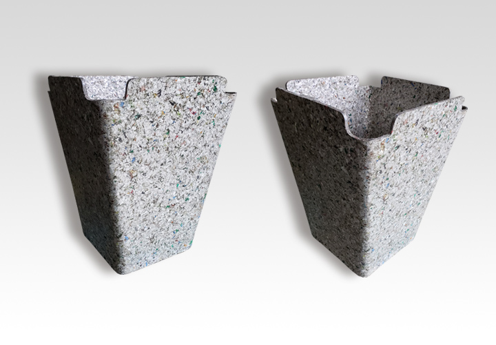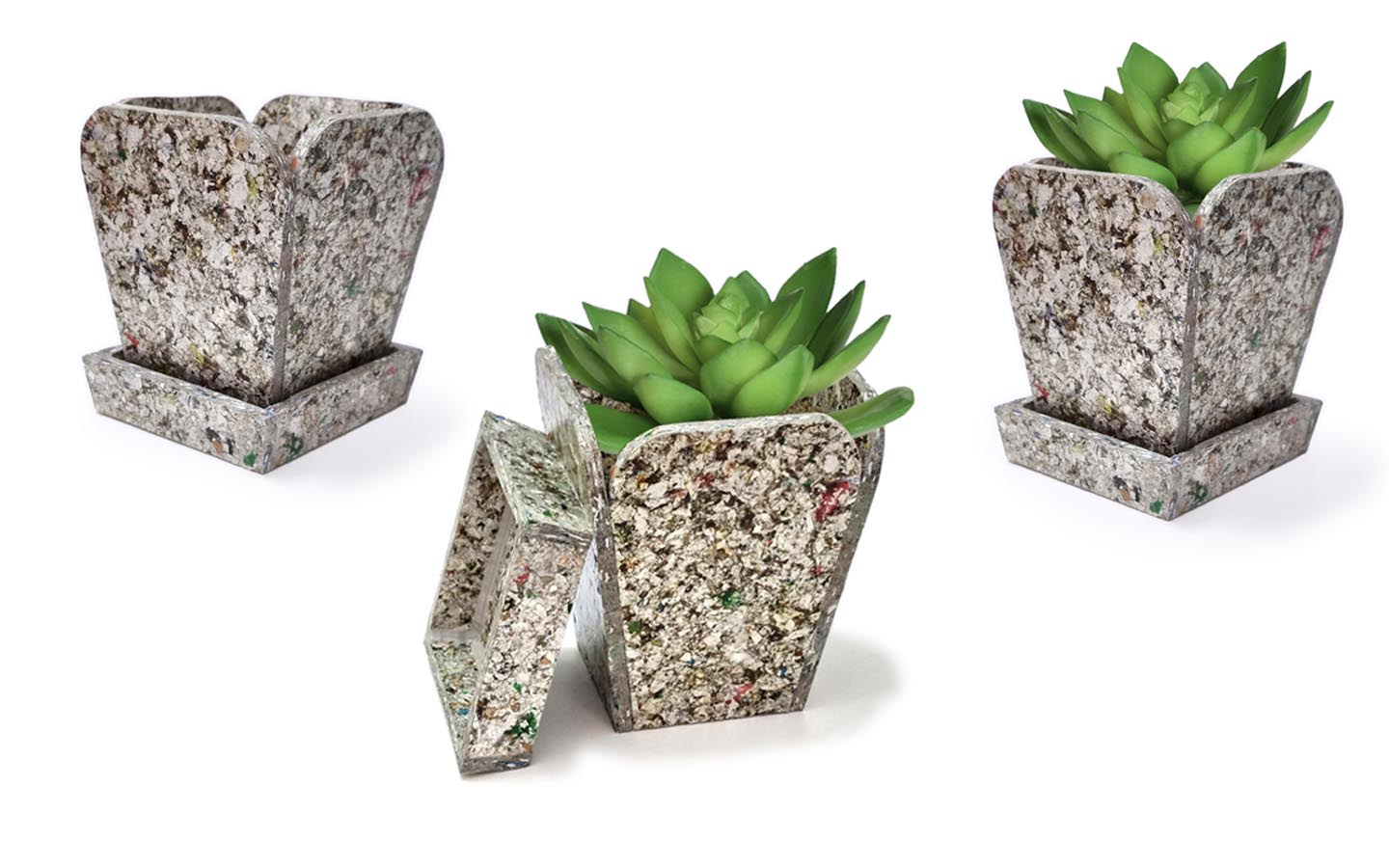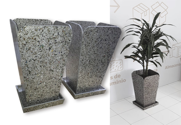 Macetita de polialuminio (material resultante del reciclado de los envases posconsumo de Tetra Pak).