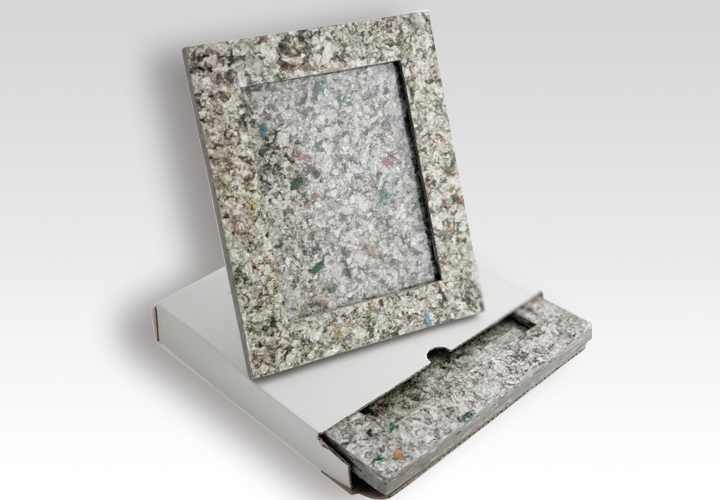 Portaretrato de polialuminio (material resultante del reciclado de los envases posconsumo de Tetra Pak). Medida 22 x 18 cm. corte recto. Portaretrato para escritório. Ideal para regalo.