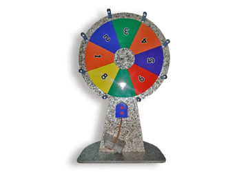 Ruleta de polialuminio (material resultante del reciclado de los envases posconsumo de Tetra Pak). Medida aproximada 45 cm de alto. Para juegos y sorteos en activaciones.