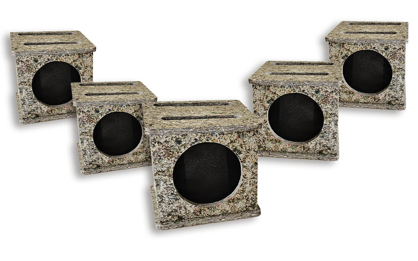 Basurero de polialuminio (material resultante del reciclado de los envases posconsumo de Tetra Pak). Ideal para oficinas Termo formado, cuerpo cónico con base cuadrada. Medida aproximada 35 cm de alto
